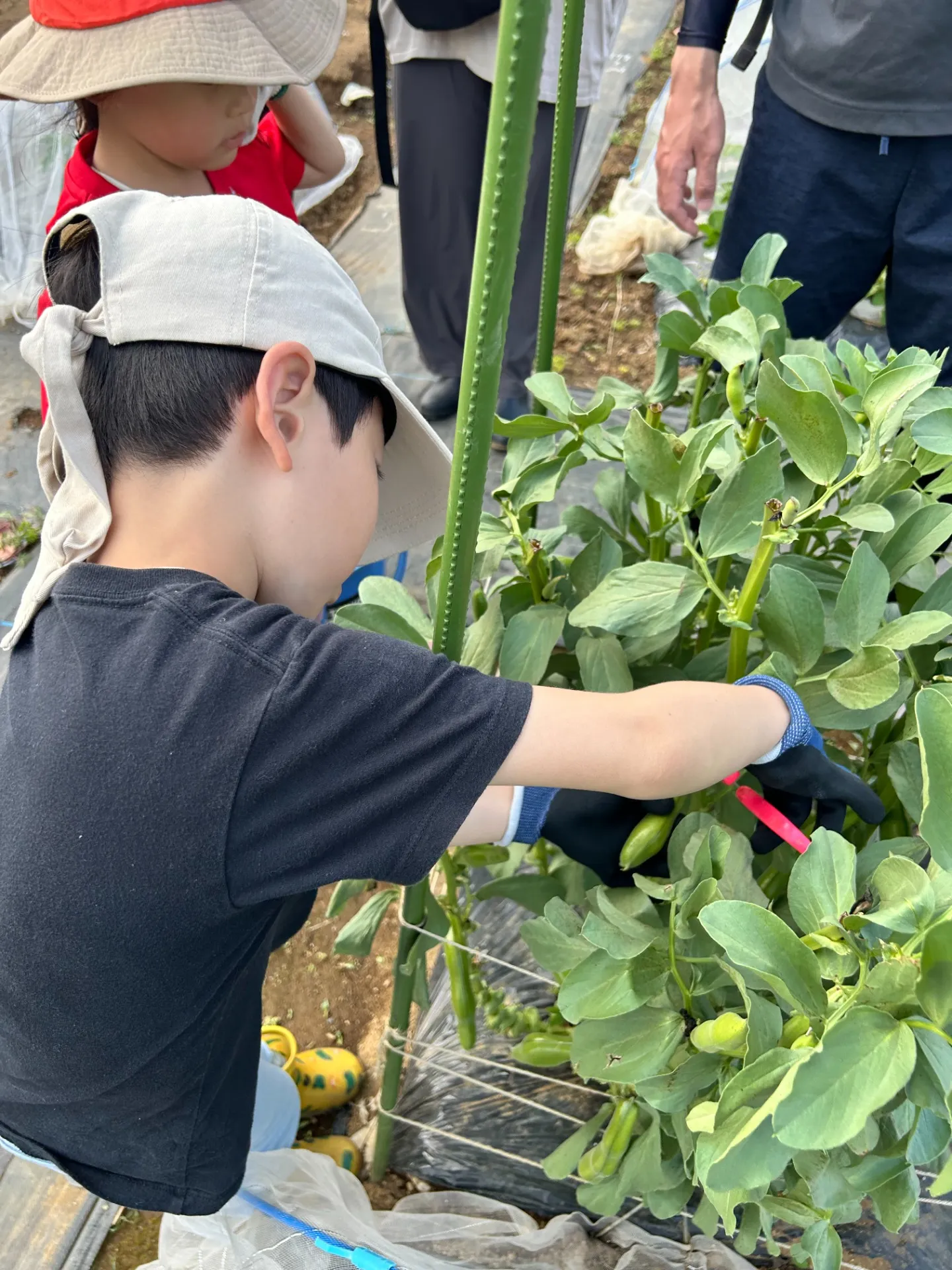 今回はソラマメの収穫👨🏻🌾とピーマン🫑、ナス🍆の苗植え、サンチェ、小かぶの種まきを行いました💪